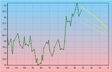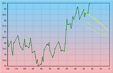 On the next day prices continue up, as expected the up-trend continues (Graph 2). However, and this is the disturbing part - prices